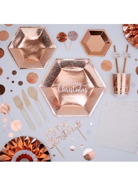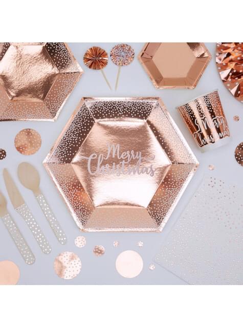 8 assiettes hexagonales Merry Christmas rose gold (27 cm) - Pink Christmas